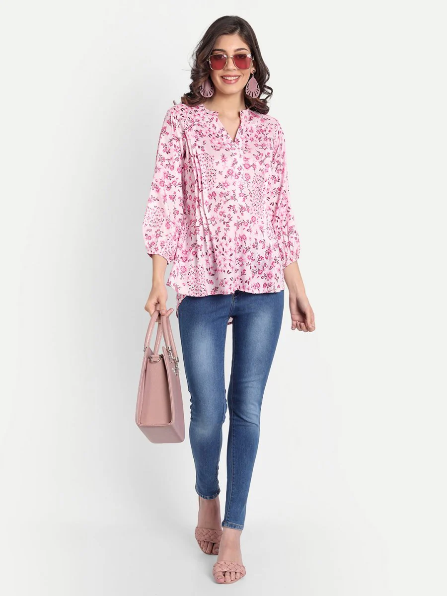 TOPS FOR WOMEN WESTERN WEAR FLORAL PINK