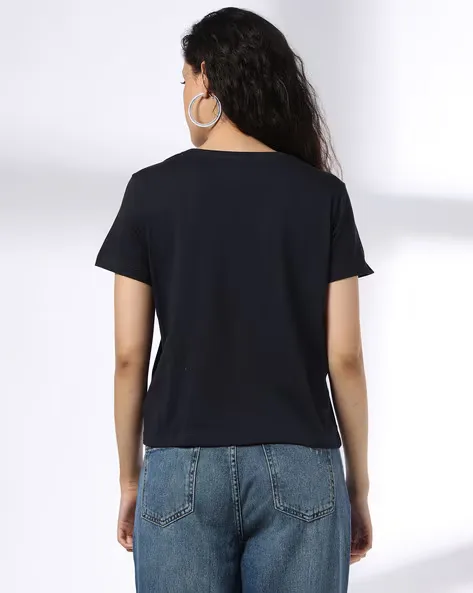 Women Typographic Print Regular Fit T-Shirt