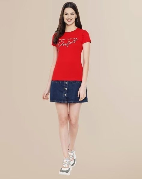 Women Typographic Print Regular Fit T-Shirt